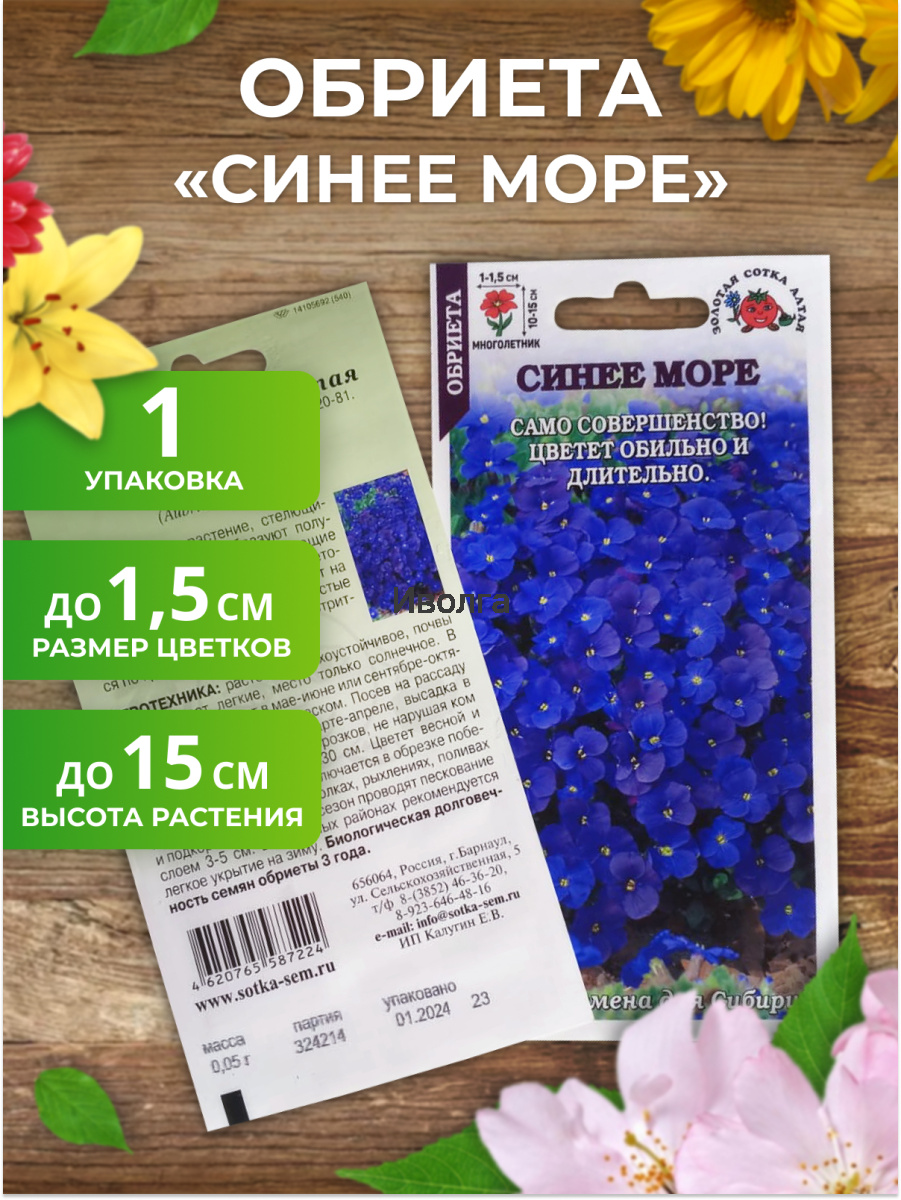Обриета "Синее море" - очаровательное растение, стелющиеся побеги которого образуют полушаровидные крутинки, зимующие под снегом. Цветочки сине-фиолетовые, мелкие. Обриету высаживают на передний план бордюра, каменистые и альпийские горки, красиво смотрится по краю стены.